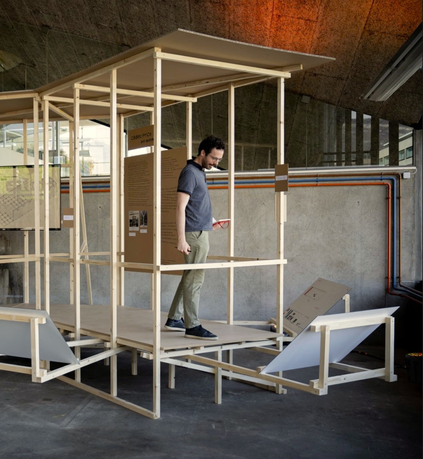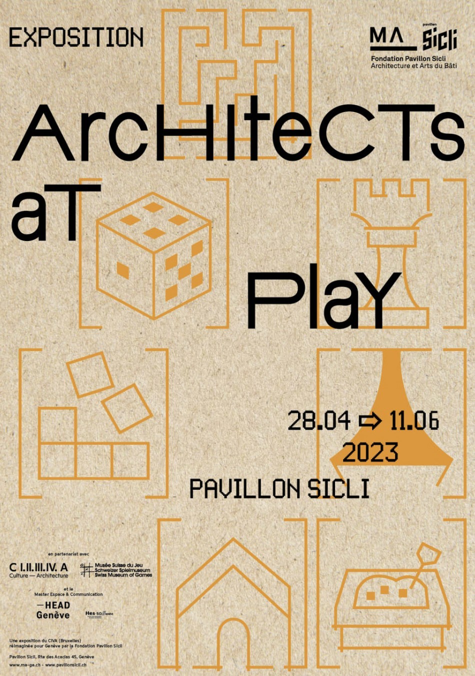 Architects at Play was exhibited in 2023 at the Pavillon Sicli, as part of the exhibition Architects at Play, in collaboration with the Master Space & Communication program at HEAD – Geneva.